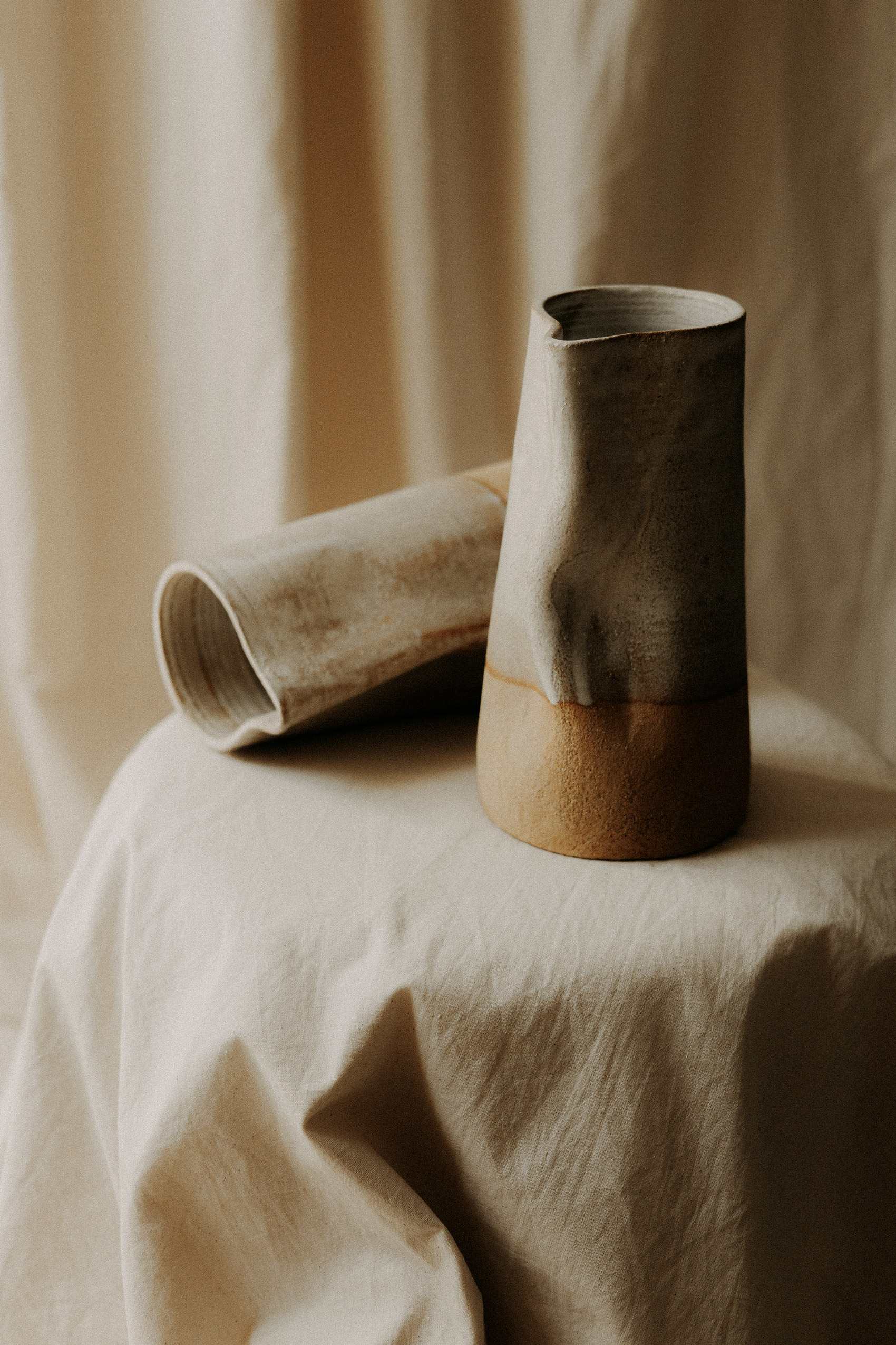 Sculpturale et imparfaite, la carafe DUNE, sans anse, assume ses lignes irrégulières et sa surface texturée. Un objet à la fois utilitaire et décoratif, qui capte la lumière et le regard.