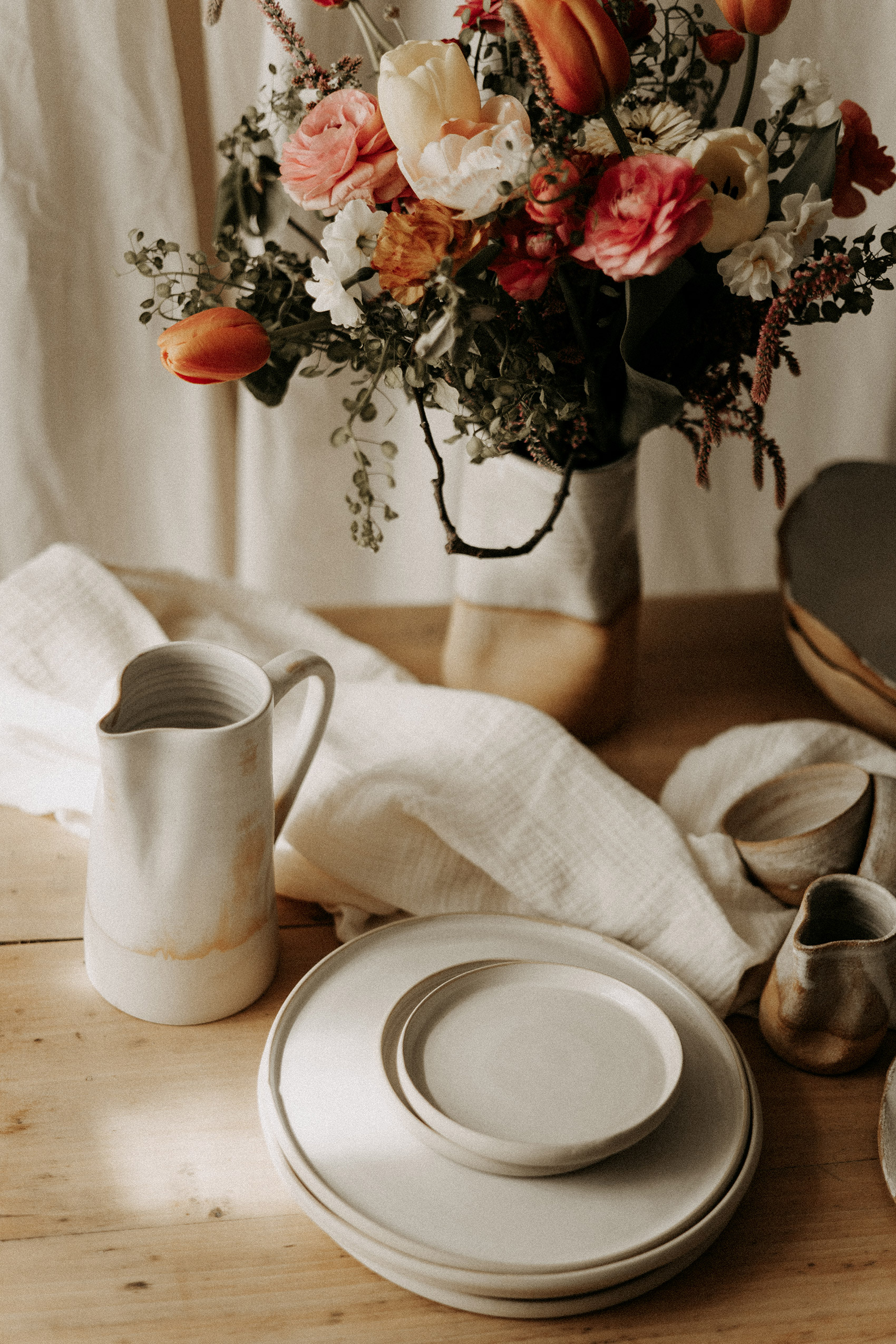 Chaque pièce est entièrement fabriquée à la main, ce qui la rend unique. De légères variations de forme, de couleur ou de taille peuvent donc exister d’une pièce à l’autre, ce qui contribue à leur charme artisanal.